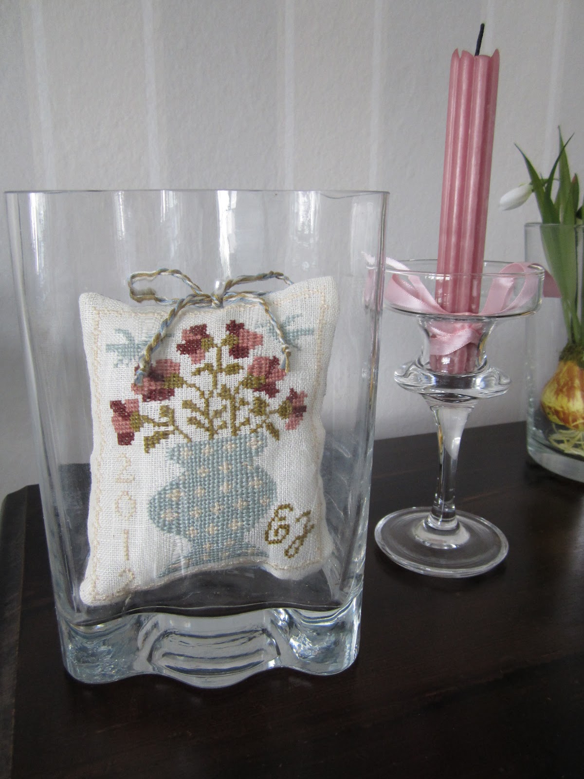 Olenkin näemmä nyt viime aikoina pistellyt tälläisiä pienempiä töitä ja paraillaankin on meneillään yksi pieni ja sievä mansikkapistely. Ihana Punahilkka-malli odottelee vuoroaan, jokohan pääsee seuraavaksi tekeille vai kiilaakohan vielä jokin ihanan kesäinen pikkupistely edelle;) Olen neulonutkin jotain, alkukesästä valmistui huivi ja äskettäin sukat, pitäisi vaan innostua kuvaamaan.